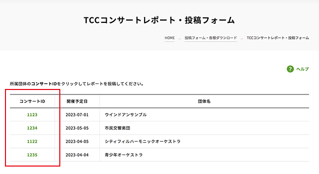 TCC承認コンサートは青枠の部分にも入力してください。