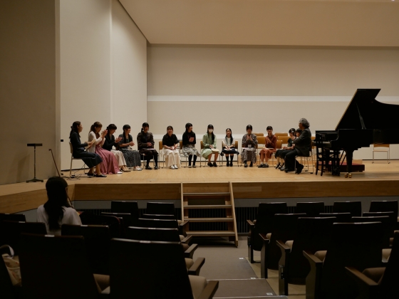 根津理恵子先生による「ソリスト養成講座」での一コマ。質疑応答の時間にはピアニストのみならず指揮者への質問もたくさん頂きました。